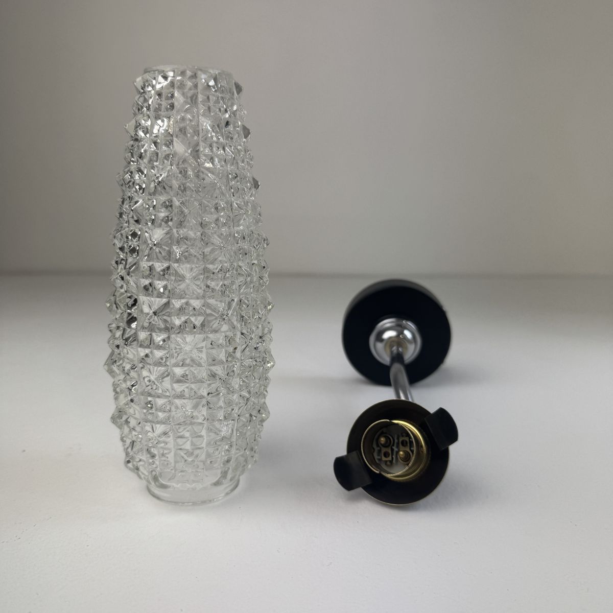 Lot de 2 belles appliques col de cygne en métal et verre pointe de diamant. En bel état général. A noter des traces sur les deux cache douille (voir photos). La base est neuve. Douce lumière.