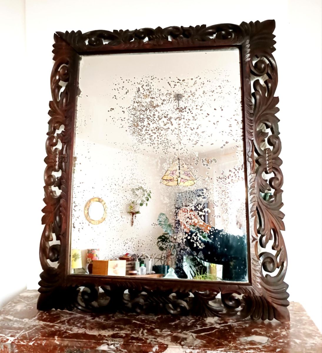 Grand miroir, glace au mercure, totalement parqué à l'arrière.