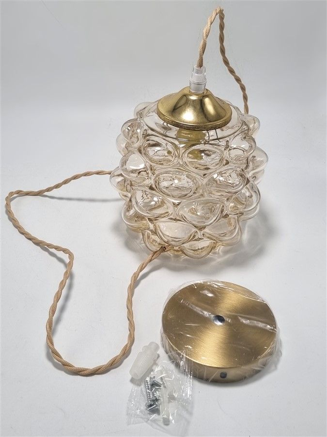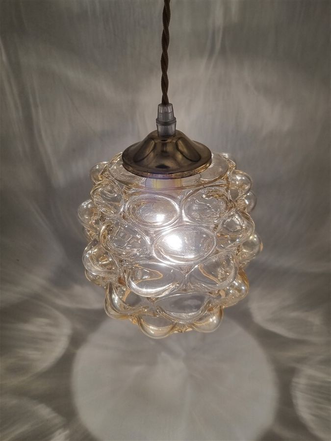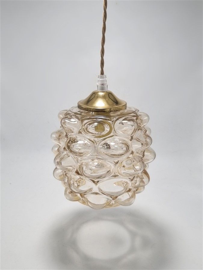 Suspension vintage Bubble par Helena Tynell, en verre couleur ambrée, relief en forme de bulles.