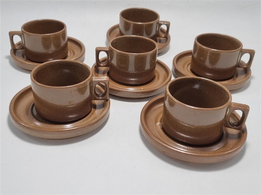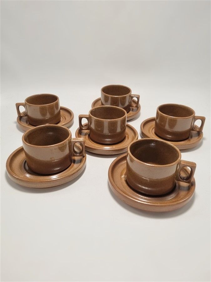 Set de 6 tasses et leurs sous-tasse en grès estampillées "Brenne Gres De Grand Feu France".