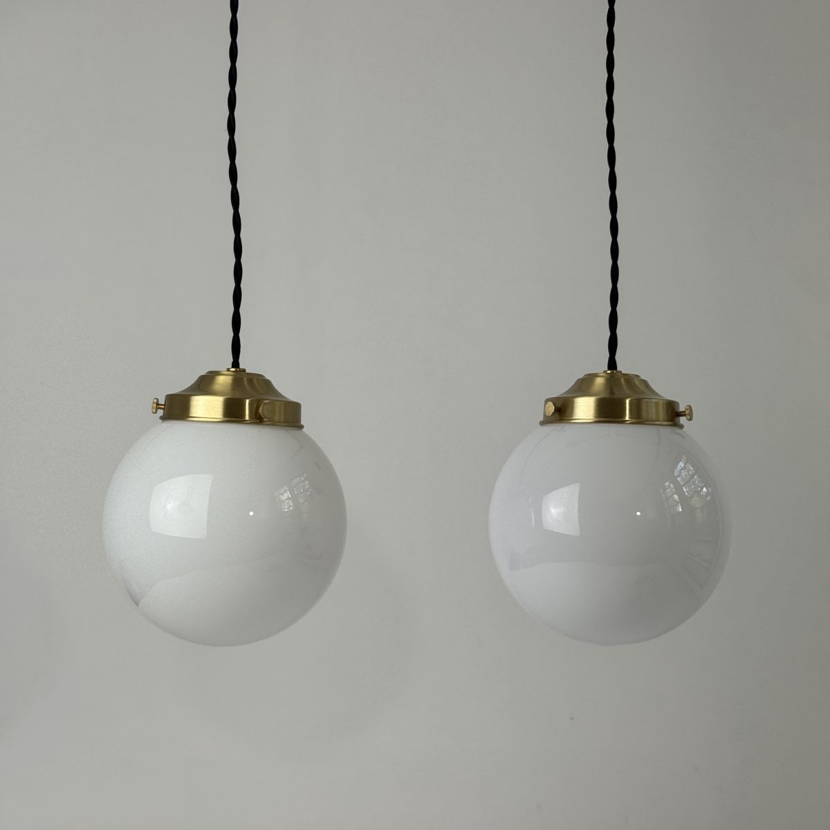 PAIRE D’ANCIENNES SUSPENSIONS EN OPALINE VINTAGE 13 CM