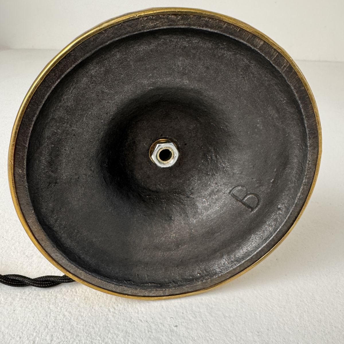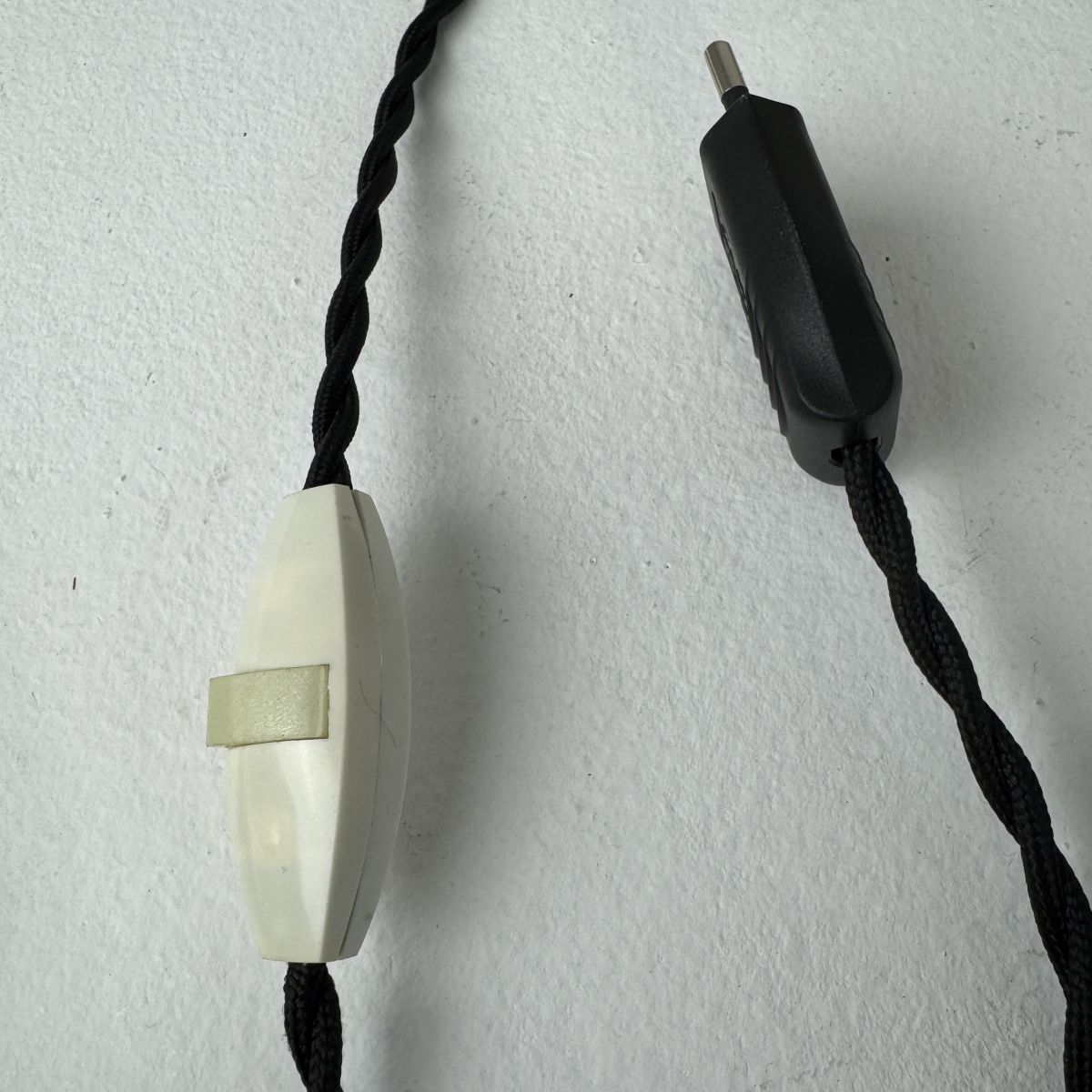 Démontée, nettoyée et électricité refaite à neuf avec fil noir en tissu torsadé. Interrupteur sur fil. Douille à vis petit culot (ampoule E14)