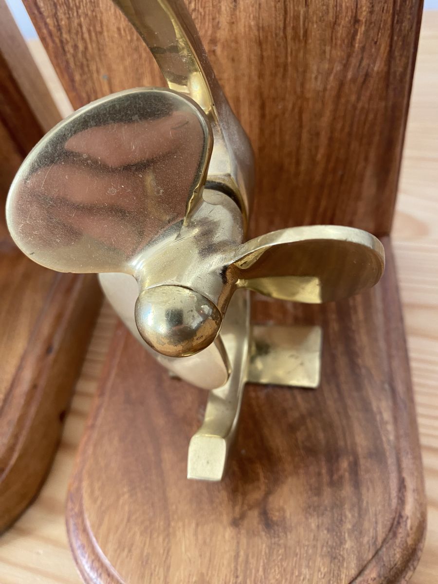 Serre-livres en bois de palissandre massif, décoré pour chacun d une hélice en laiton.