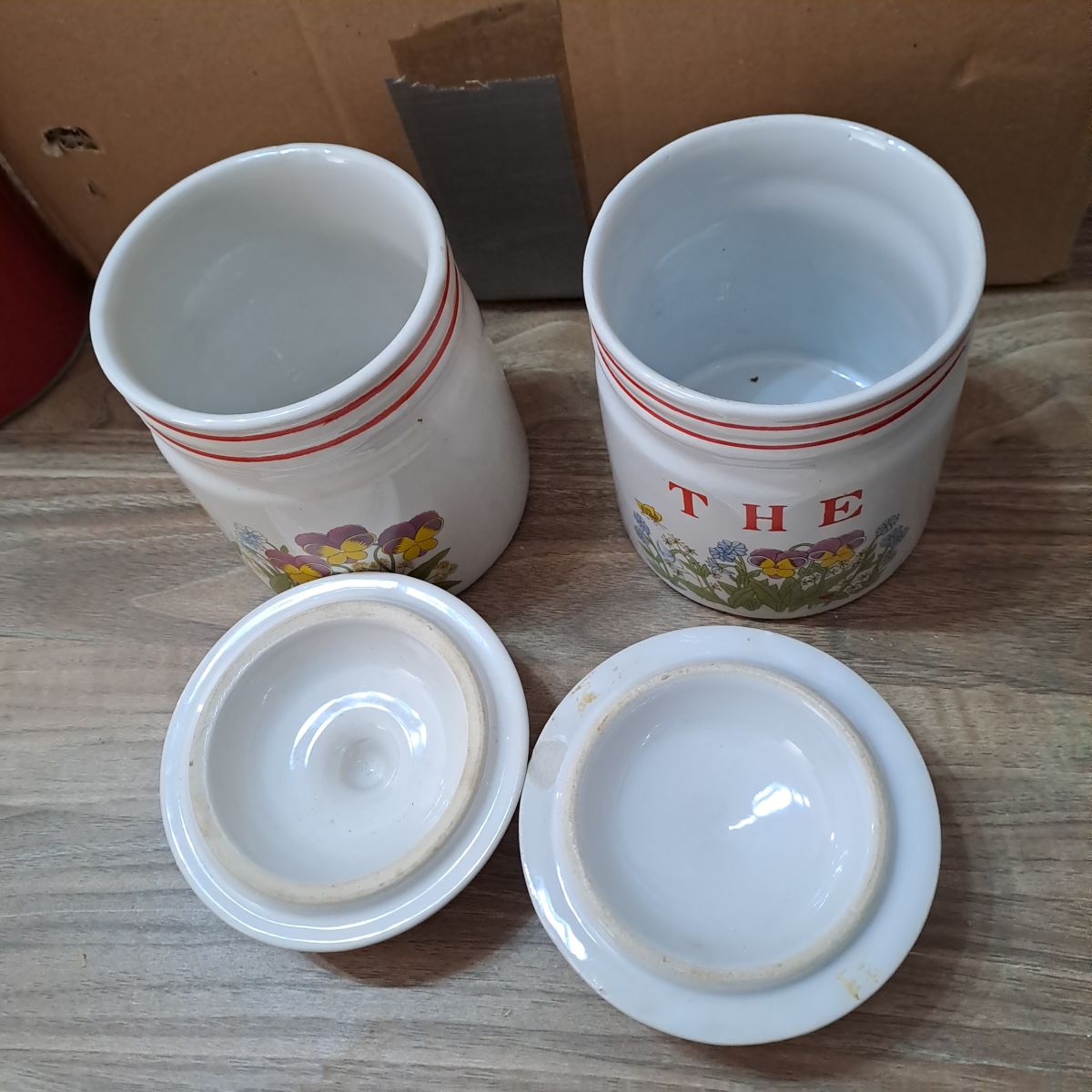 2 pots céramique vintage fleurs thé couvercle