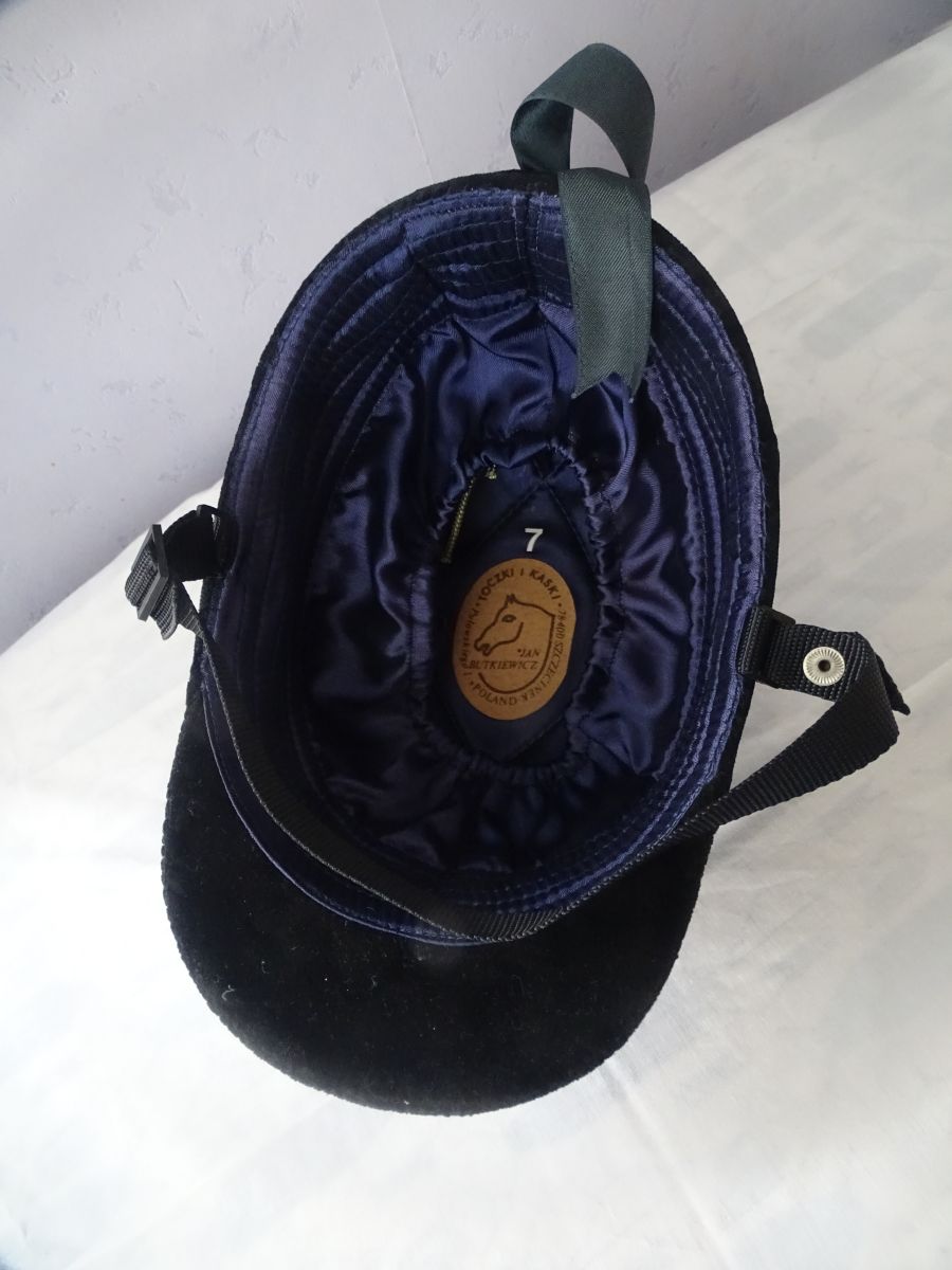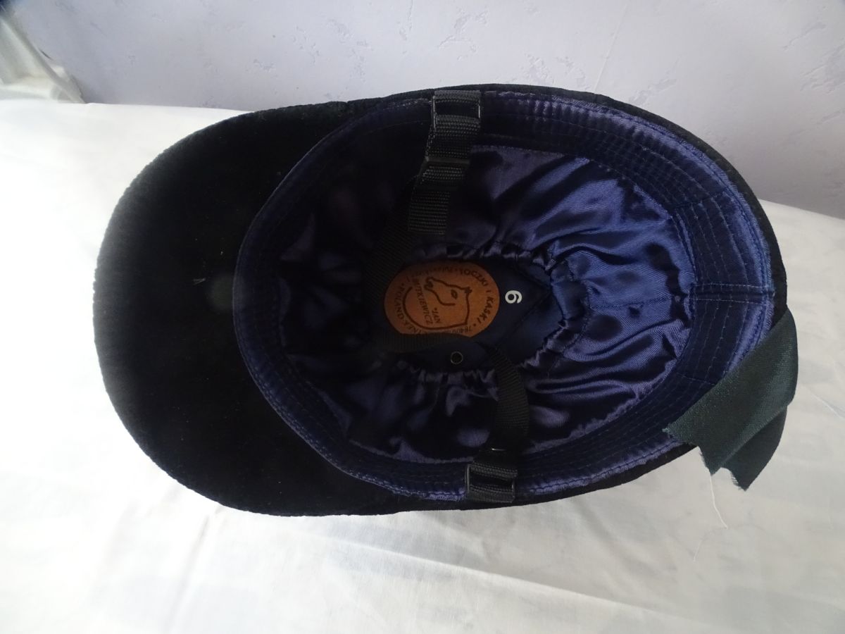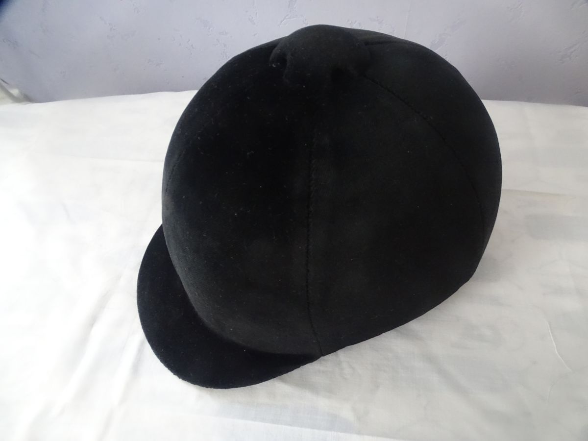 bombe d'équitation à l'ancienne qui est toujours utilisée par les cavaliers de chasse à courre par les sonneurs et les veneurs. elle ne respecte pas les nouvelles normes européennes de sécurité en terme de protection du cavalier