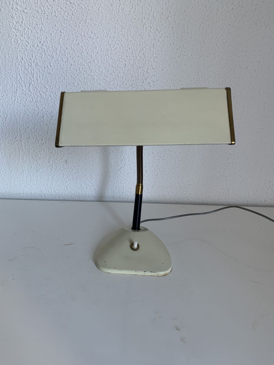 Lampe vintage 1950 bureau enfant appoint chevet crème doré -