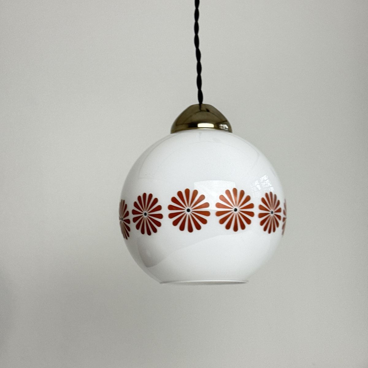 Belle suspension ronde des années 1970 avec décor floral. A noter quelques manques sur les fleurs (voir photos)