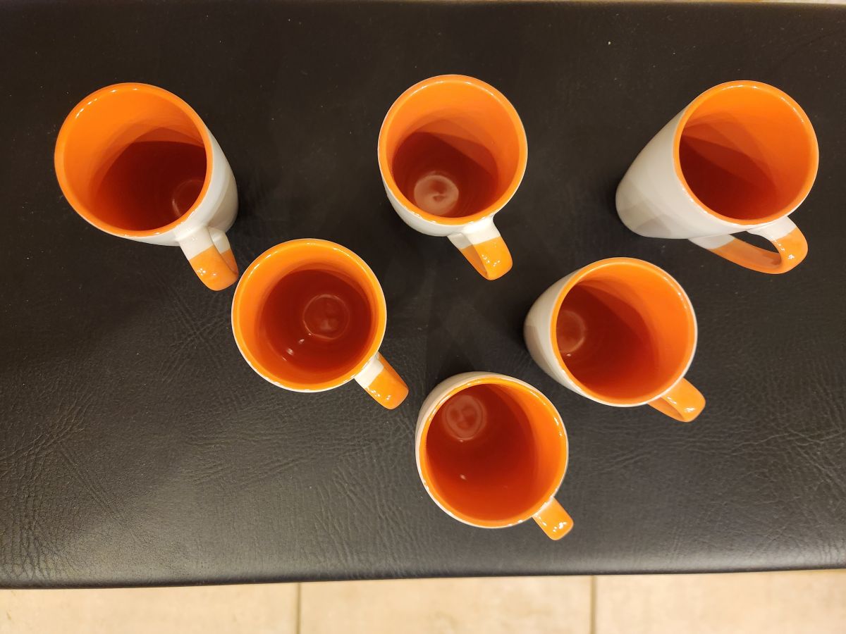 Lot 6 tasses orange et blanches – 10 cl – parfait état