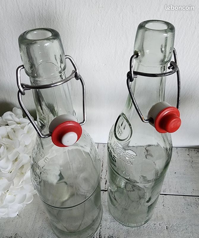 2 BOUTEILLES ANCIENNES MARQUE GEYER FRERES 1895 BOUCHON HERMETIQUE PORCELAINE/75CL