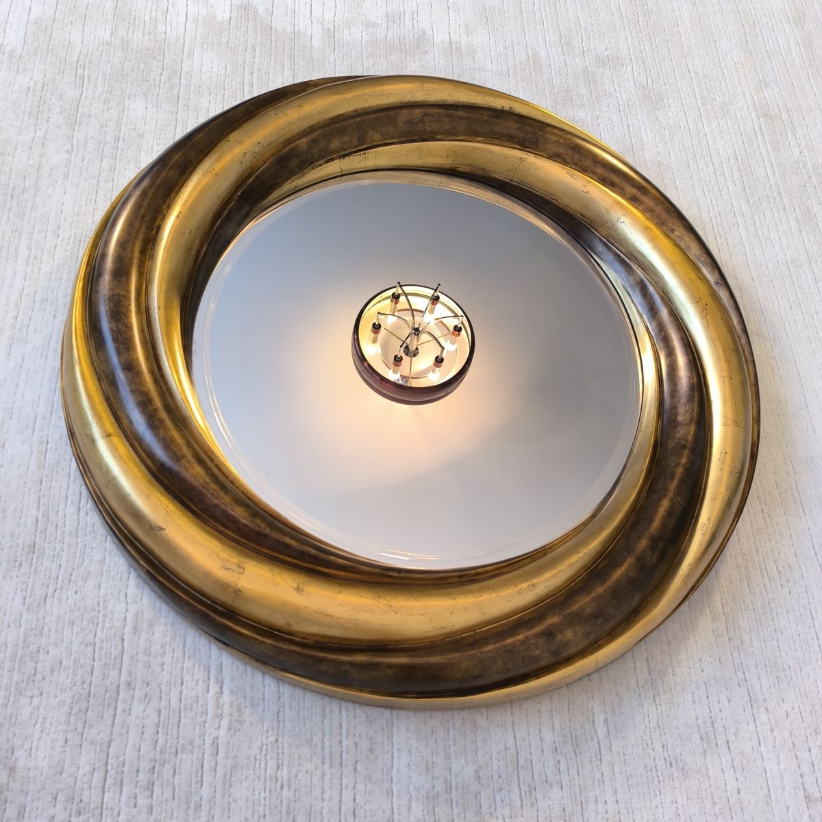 ????✨ Grand Miroir Rond Victorien Anglais – Bois Doré & Verre Biseauté – Pièce Collector ✨????