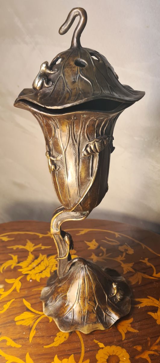 brule encens bronze art nouveau feuille, grenouille ciselé ,