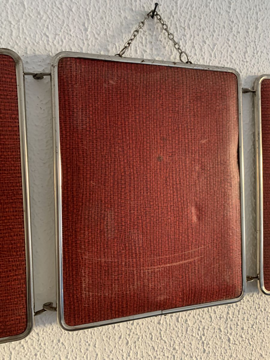 Miroir vintage 1950 triptyque barbier coiffeuse brique - 27