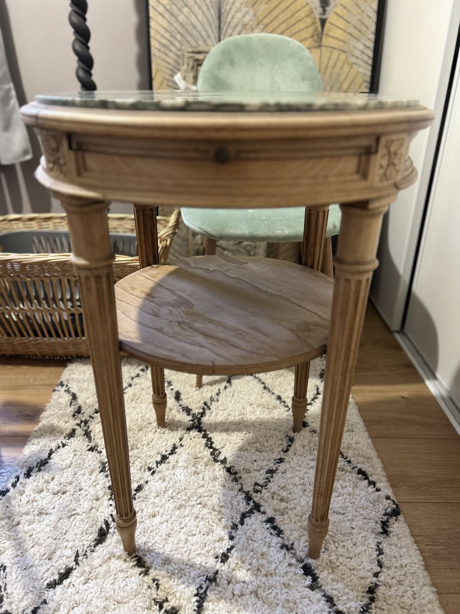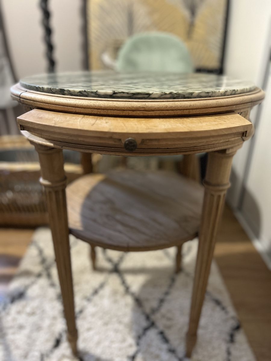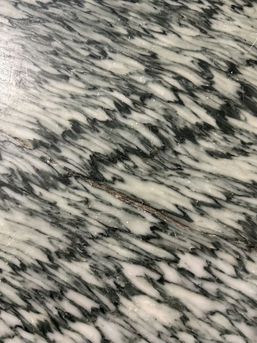 le plateau est en marbre vert, un peu fendu (voir photo)