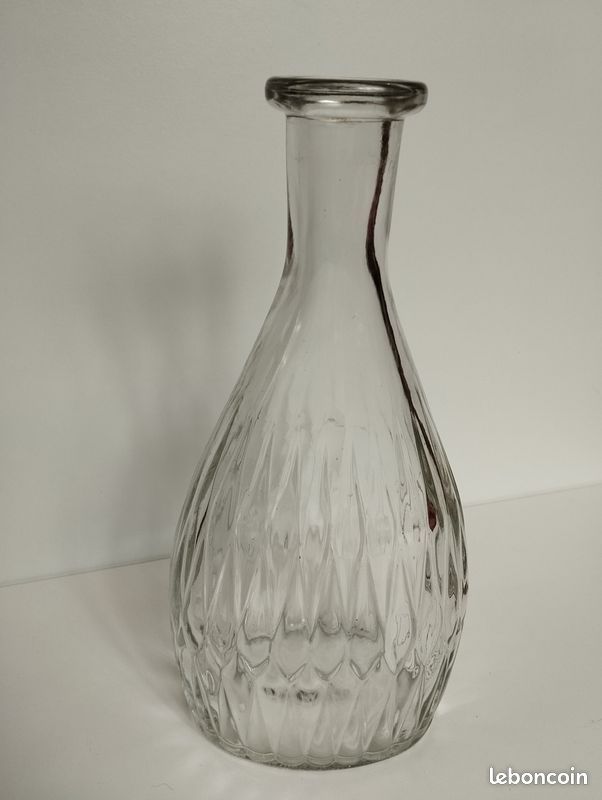 2 BOUTEILLES VERRES A FACETTES NERVURES/1 LITRE CHAQUE