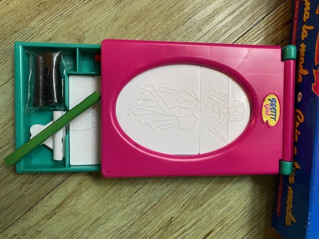 boitier avec tiroir contenant tout le nécessaire pour colorier de beaux vêtements. Simple et amusant.