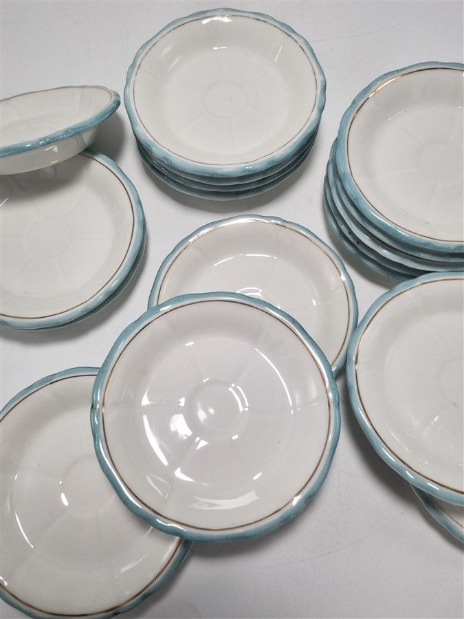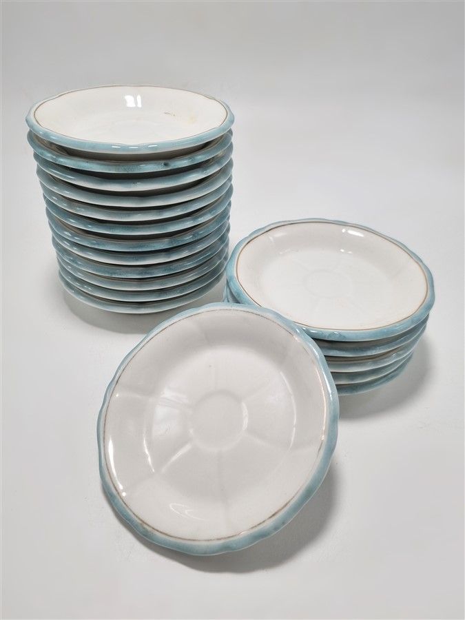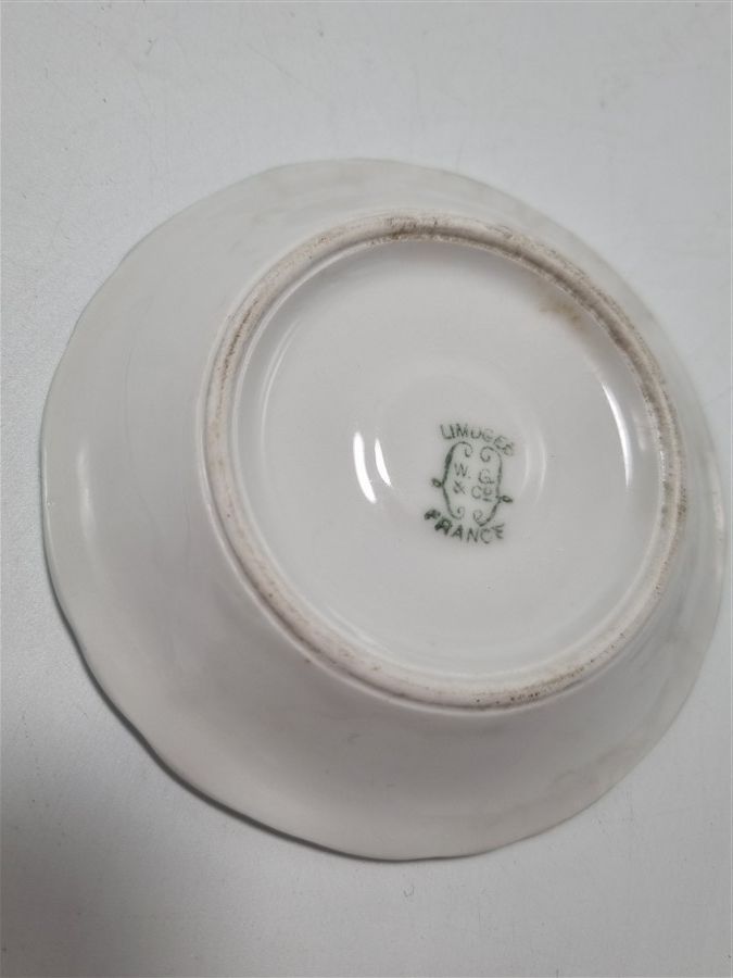 Coupelle en porcelaine de Limoges, blanche avec des liserés bleu et doré sur le pourtour.