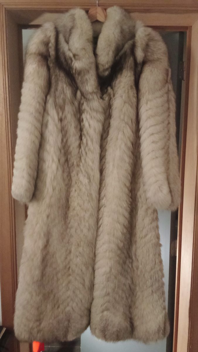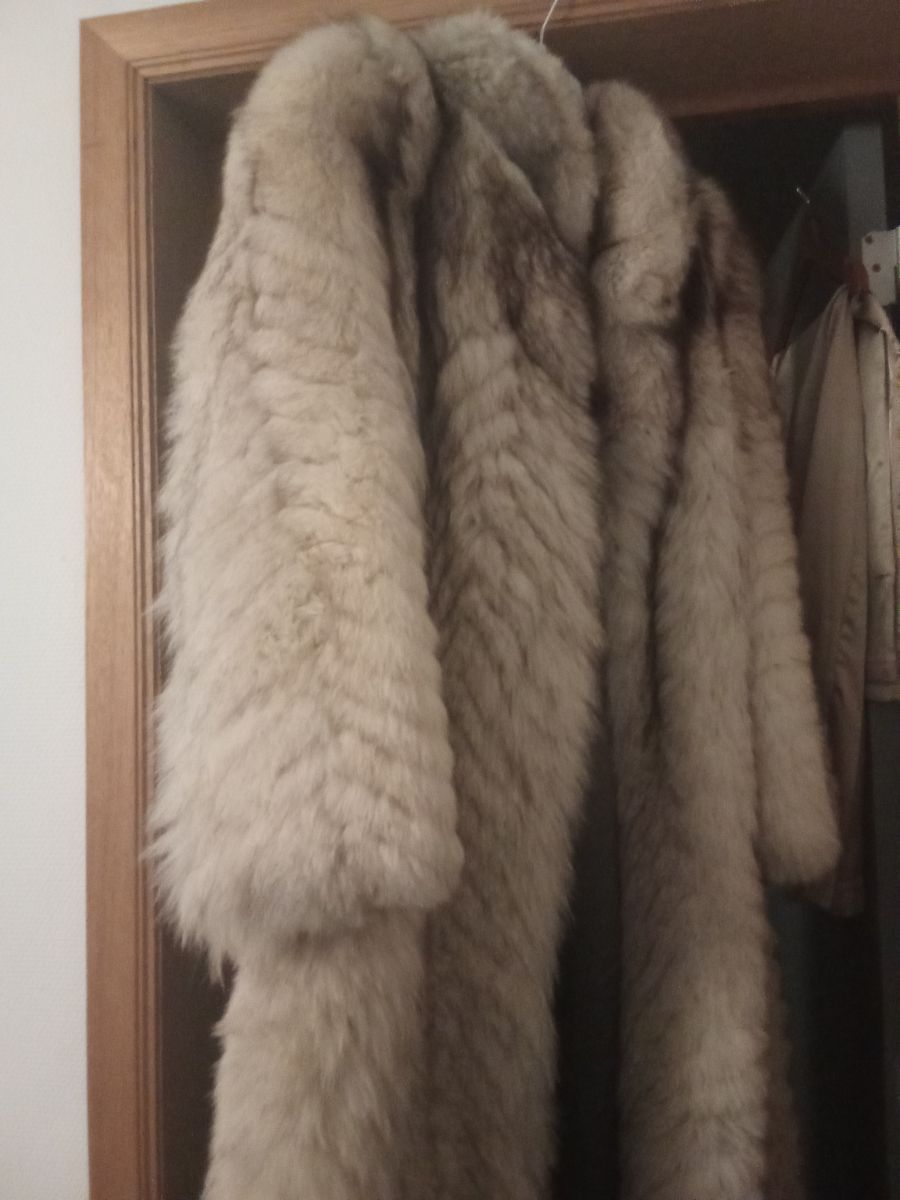 Manteau en véritable fourrure de renard bleu,long,taille +ou- 40.