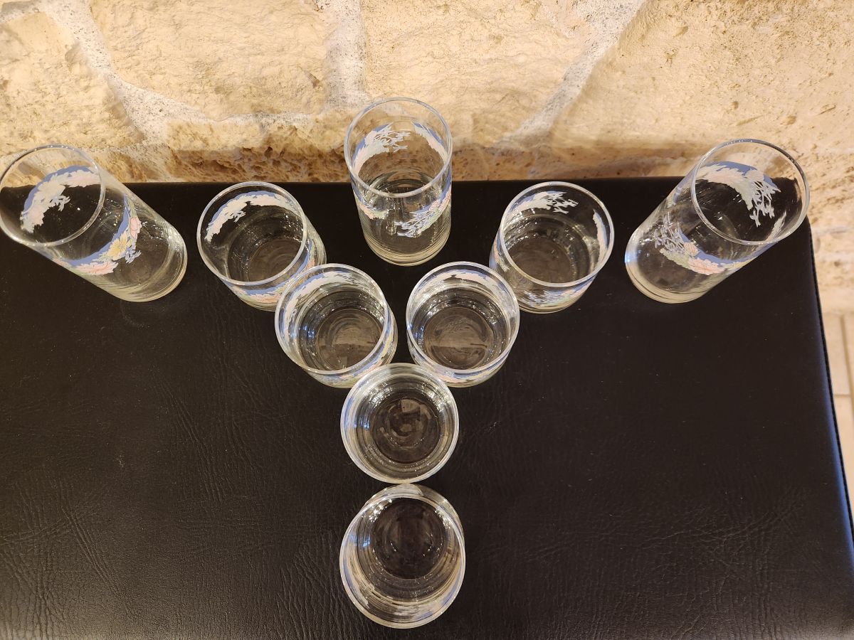Lot de 9 verres Arcopal Florine – fleuris et rétro