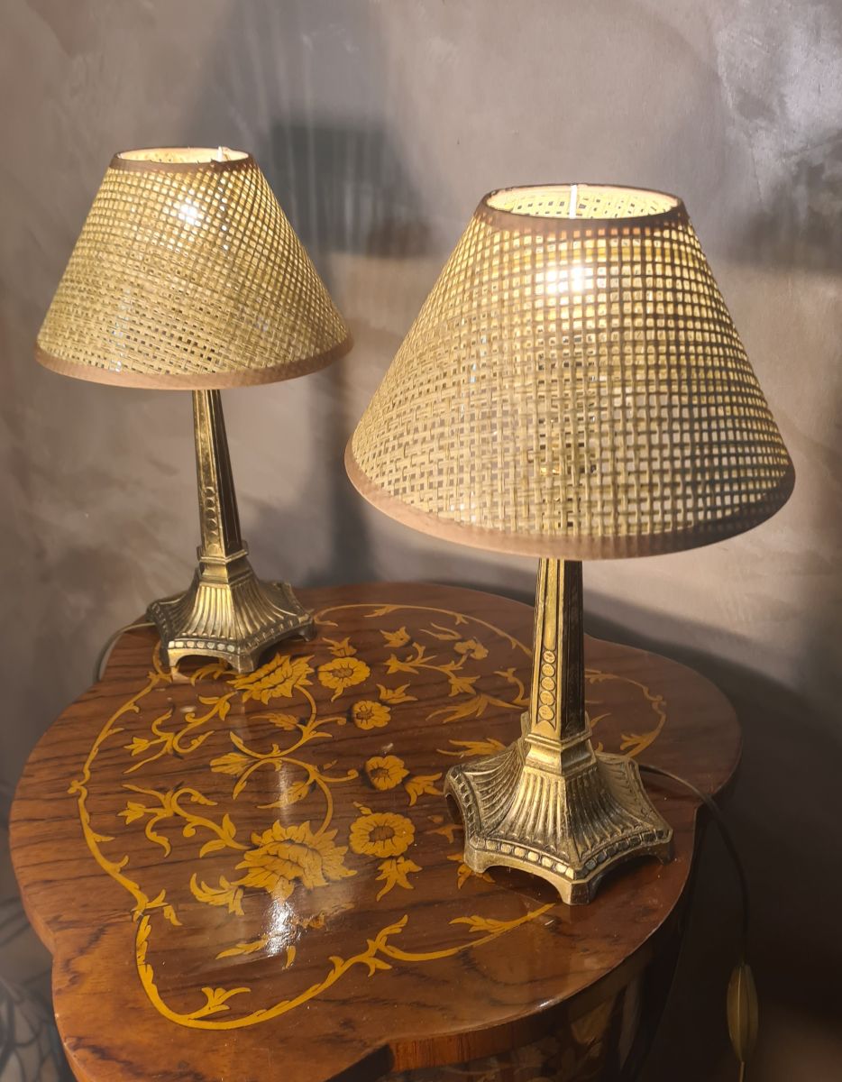 paire lampe regule doré 1960 chevets 35x21 avec abat jour ca