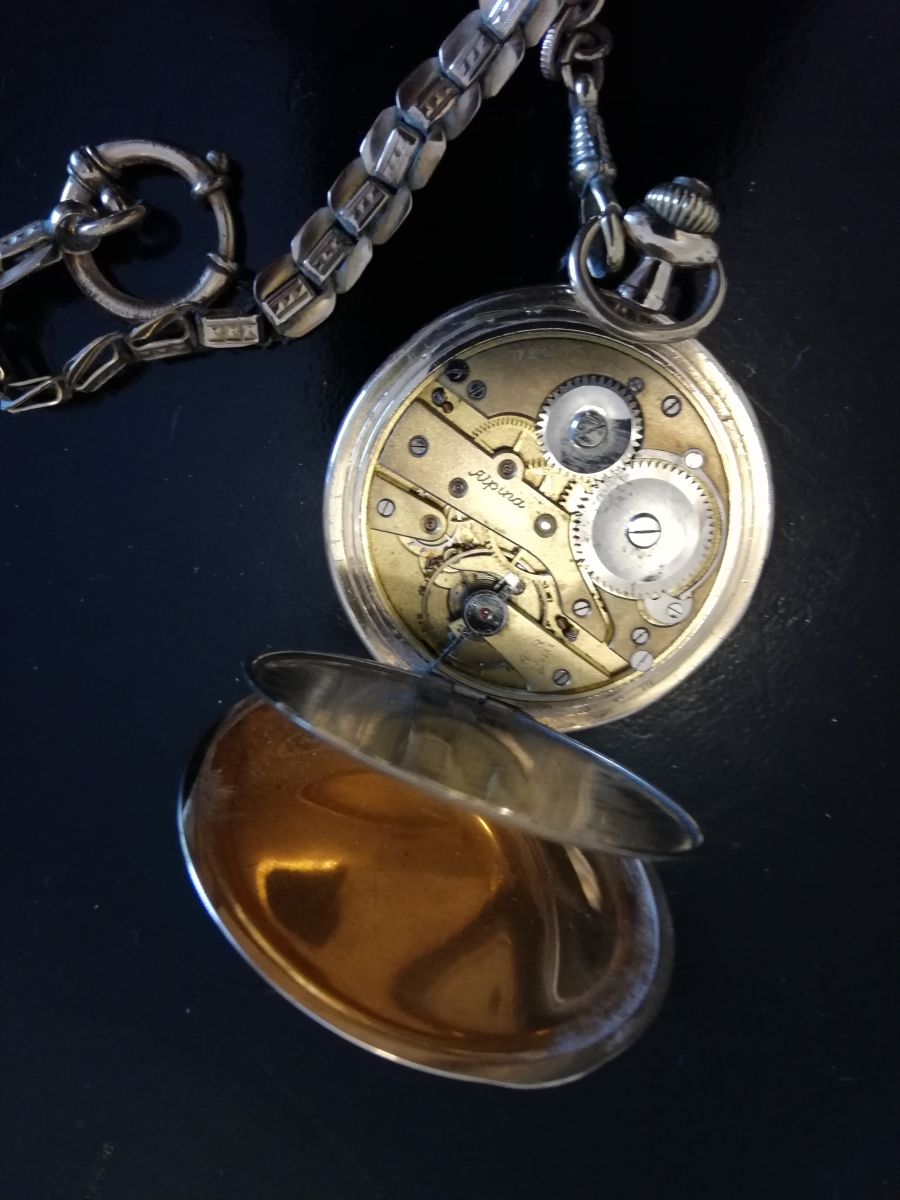Montre à Gousset ALPINA début du XXème. Marque : Alpina N° série : 344913 Mouvement : Remontage manuel Boitier ; Or jaune Année de fabrication : début du XXème Etat : Très bon (traces d'usure nulles et légères) Contenu livré : Sans coffret d'origine, sans papiers d'origine Diamètre : 44X6 Cadran :