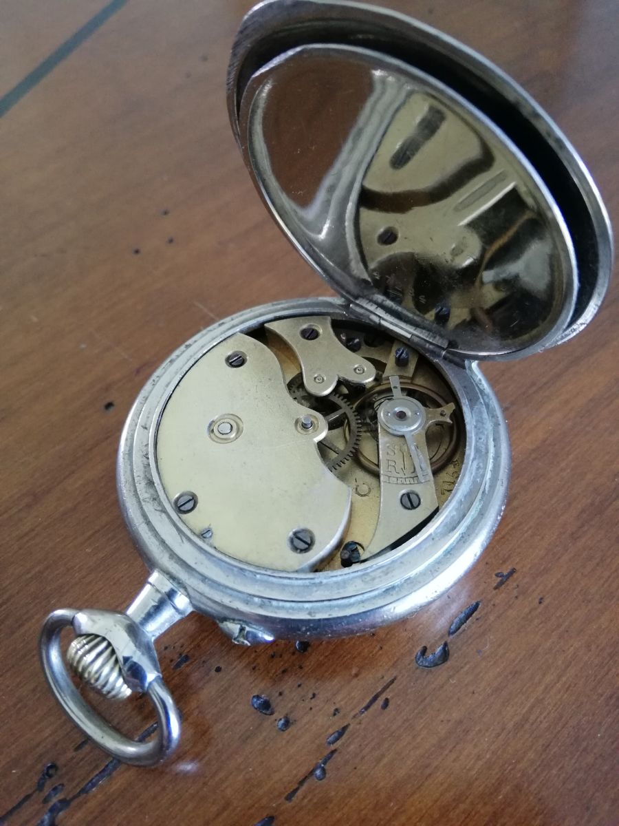 Montre à Gousset "sans marque" état de fonctionnement en métal argenté. Série n° 47234. Usure en dessous des secondes sinon état correct pour l'époque.