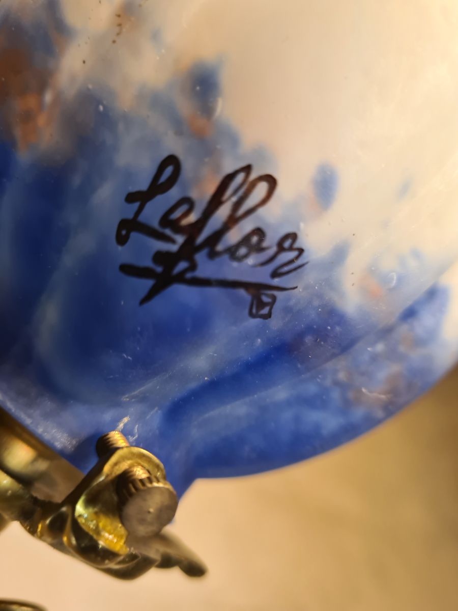 lampe bronze ciselé art nouveau avec tulipe signé laflore ,38x22 elec ok