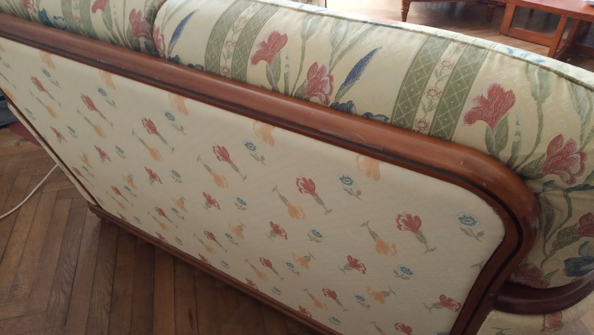 Je vends 1 canapé vintage droit fixe marque Leleu assise ferme