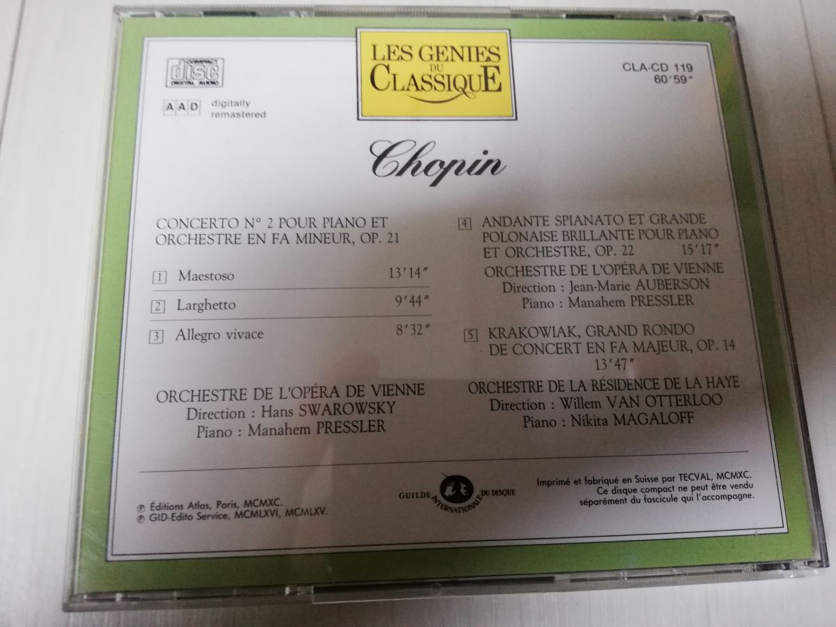 Collection complète de 108 CD Classique " Les génies du Classique par Atlas".Avec les 4 volumes des génies du classique.Très exhautif pour créer sa discothèque classique complète.Très bon état, pas de rayures.Lot inséparable.