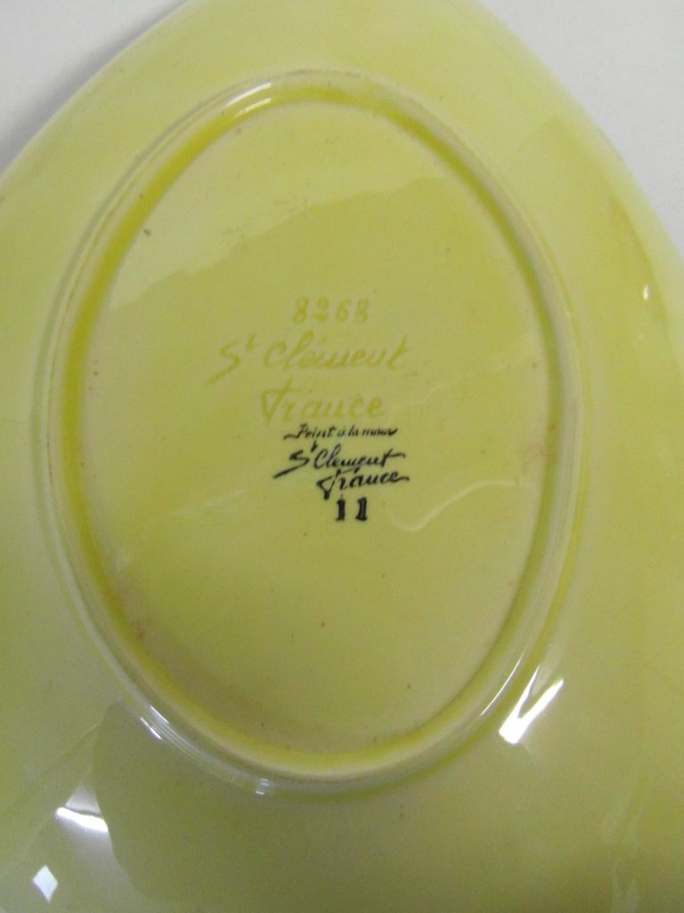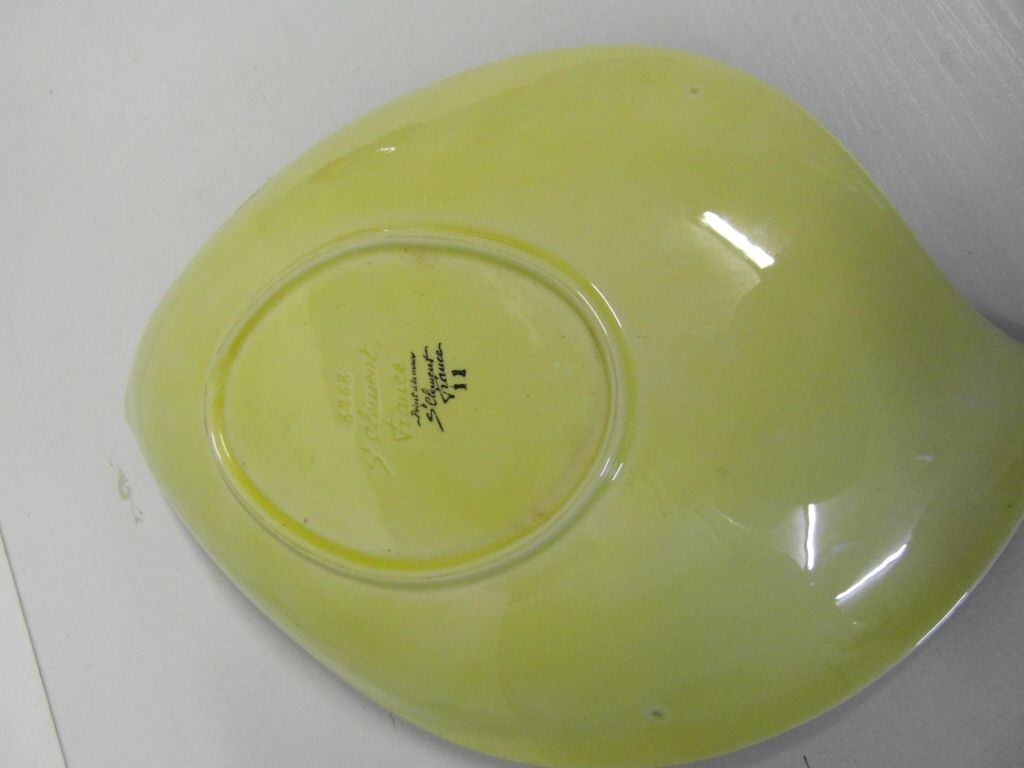 Belle coupe à fruits en céramique Saint Clément, aux dimensions suivantes: 38cm x 25cm