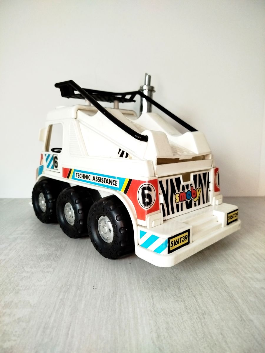 Fabriqué en France, ce jouet porte le marquage « Modèle déposé international – Made in France », gage de qualité et de durabilité. Smoby, marque française reconnue, est célèbre pour ses jouets solides, pensés pour durer et traverser les générations. Ce camion est aujourd’hui très recherché par les collectionneurs de jouets vintage et amateurs d’univers rallye.