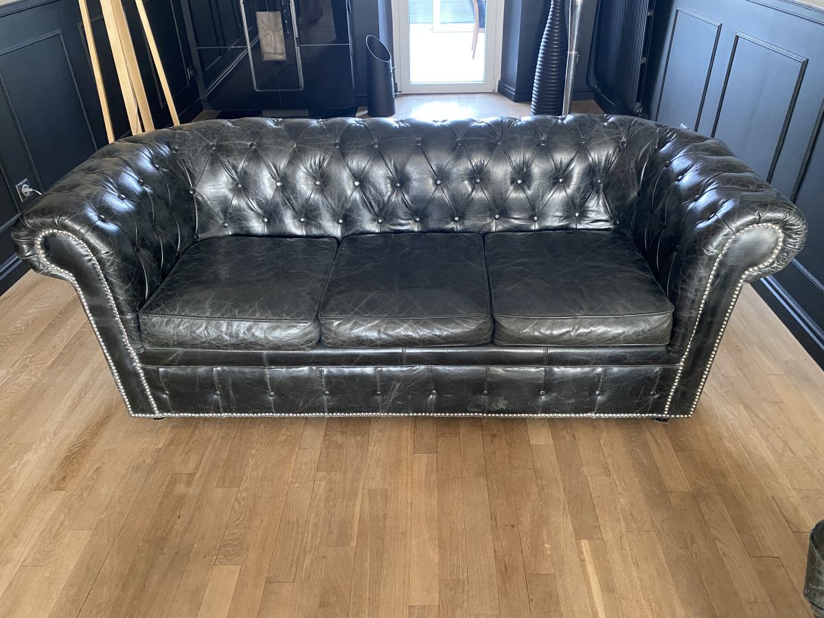 Je vends un ensemble Chesterfield en cuir vintage, composé de :