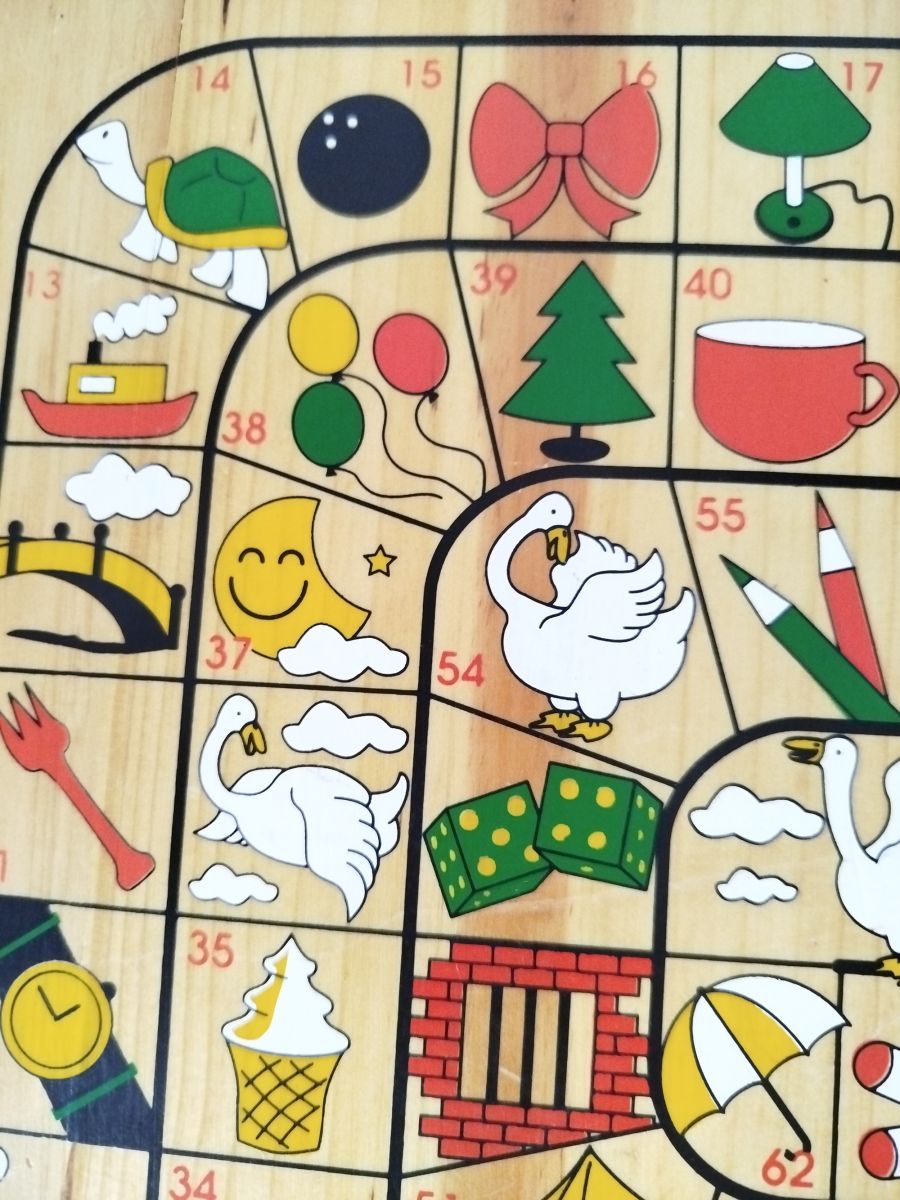 Magnifique plateau de jeu ancien biface en bois, combinant deux grands classiques : le Jeu de l’Oie illustré et les Petits Chevaux. Un bel objet à la fois ludique, décoratif et chargé de nostalgie, idéal pour les amateurs de jouets anciens, de brocante et de décoration rétro.