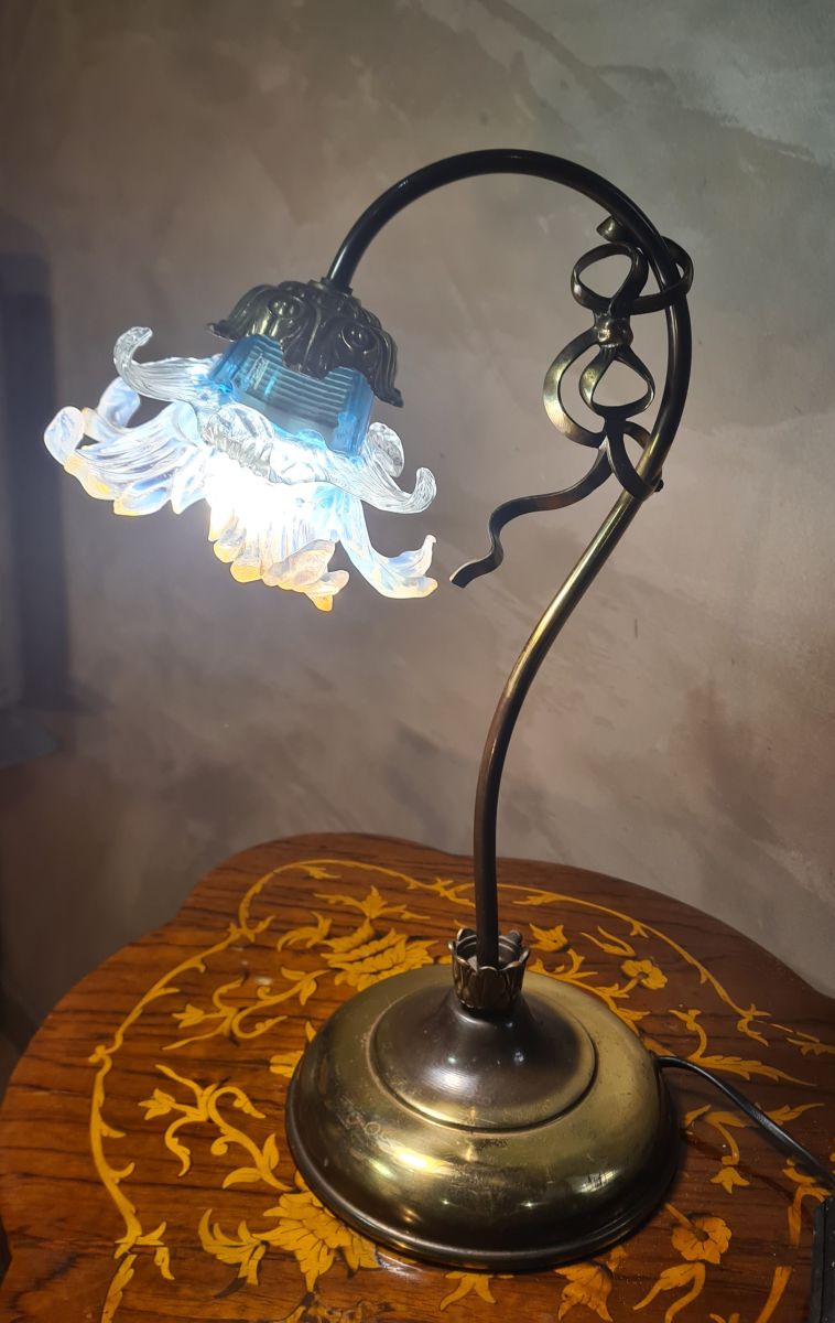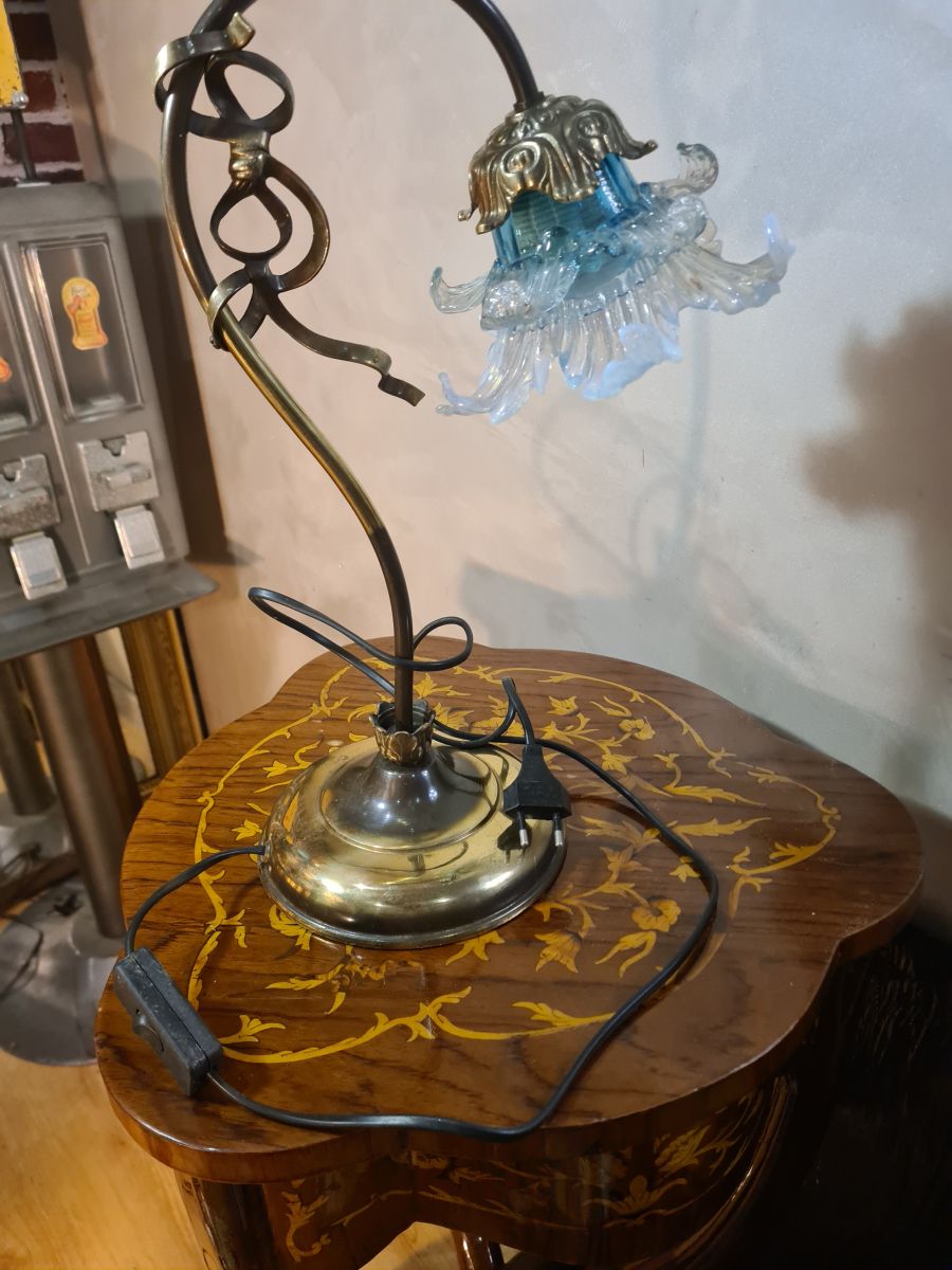 lampe laiton 1975 elec ok superbe tulipe bleu translucide 4