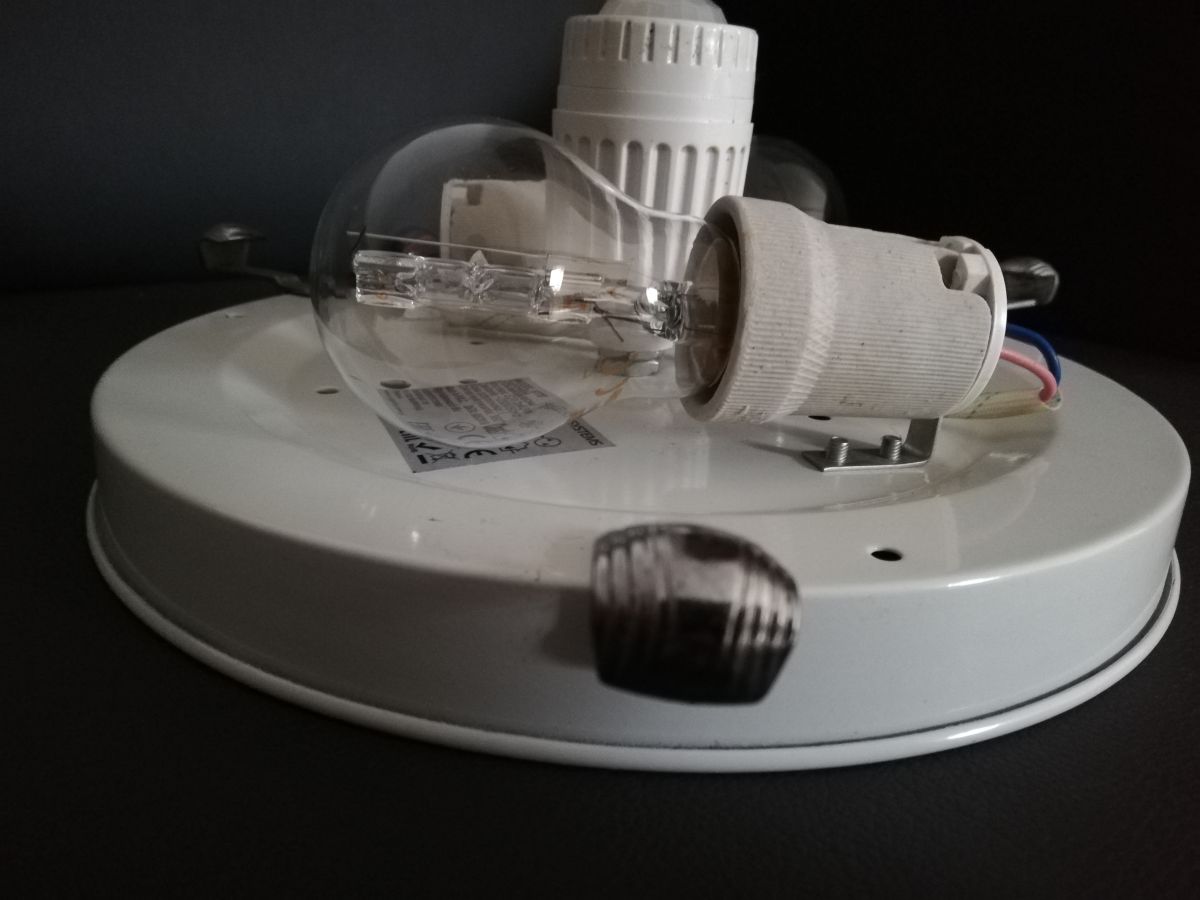 Plafonnier extérieur en métal et opaline avec Détecteur de Mouvement.
