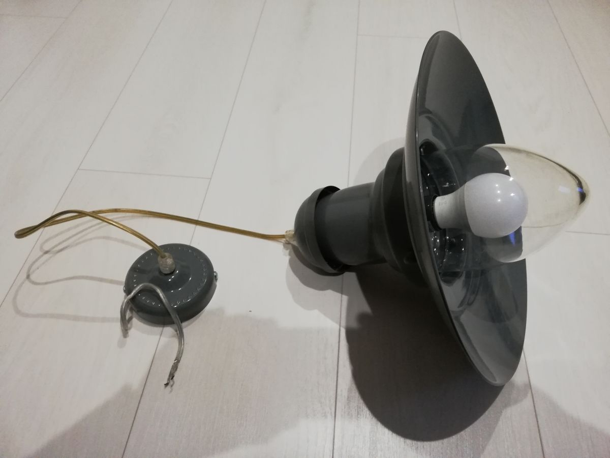 Suspension Globe en Verre et fer style loft. 90 cm x 34 cm x 30 cm.