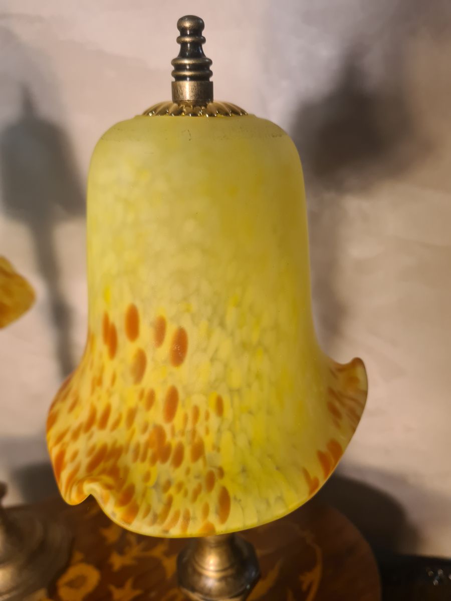 paire de lampes de chevet laiton et pate de verres jaunes 1930 art deco