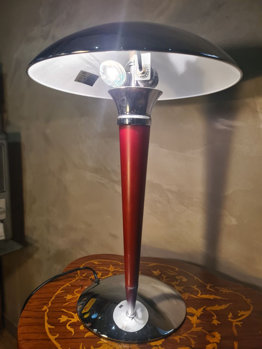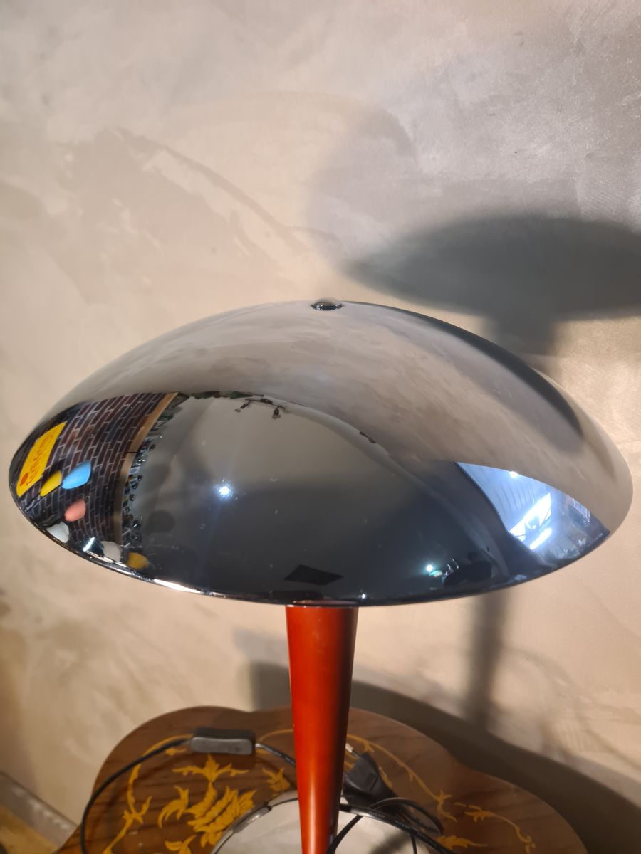 Lampe Champignon Vintage Rouge et Chrome - 47x31 Space‑Age 1970s - 80 , Lampe paquebot