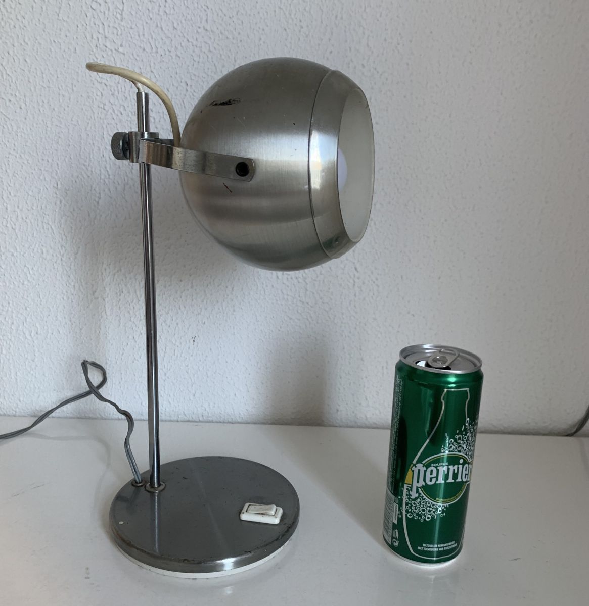 Lampe vintage 1960 de table eyeball acier brossé Aluminor -