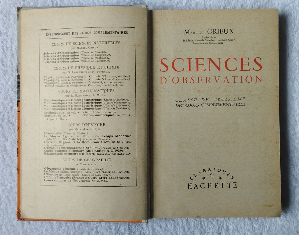 Sciences d'observation - classe de 3e - 1957