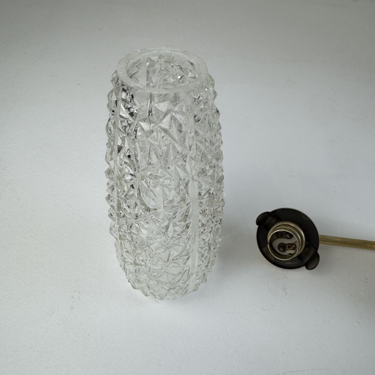 Lot de 2 appliques en laiton et verre pointe de diamant. En bel état général. La base est neuve. Douce lumière.