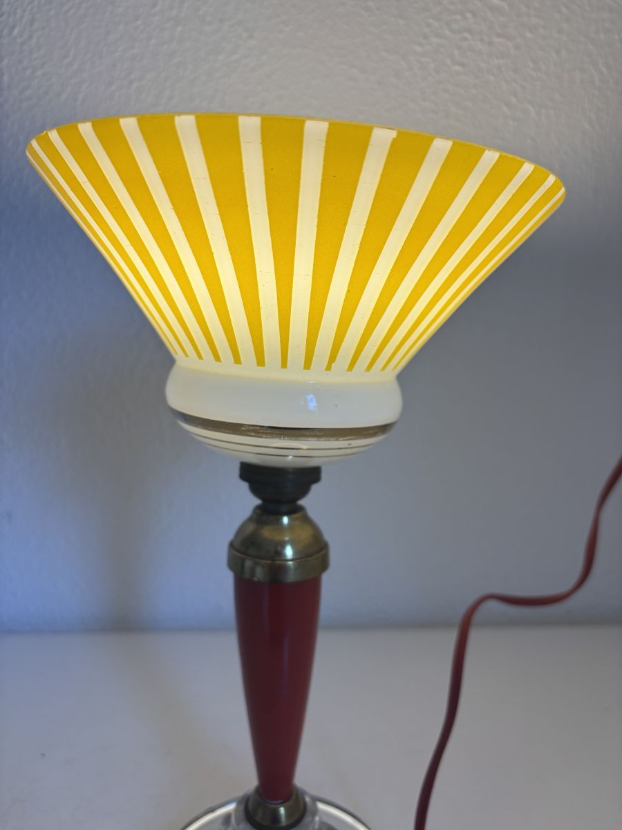 Cette lampe d'époque Art Déco est tout à fait atypique, elle a clairement un côté arts forains très assumé.