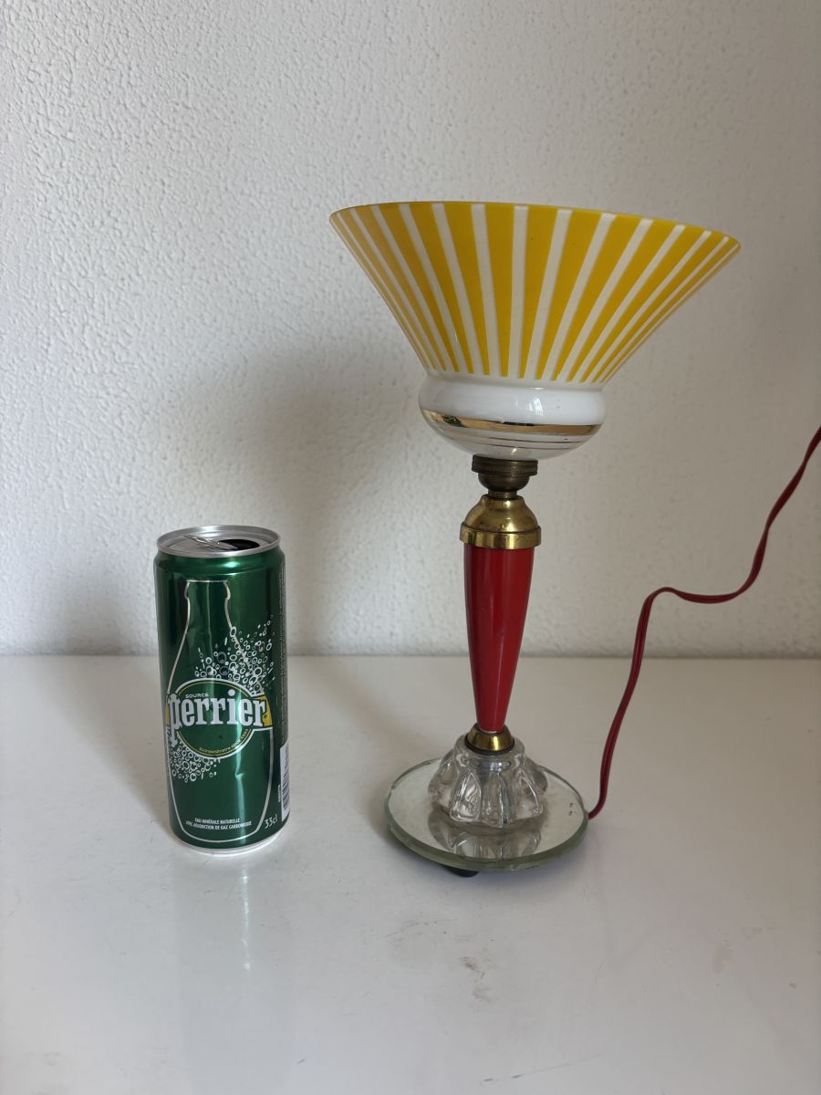 Ancienne lampe de de table en laiton, verre et miroir circa 1930 en bon état.