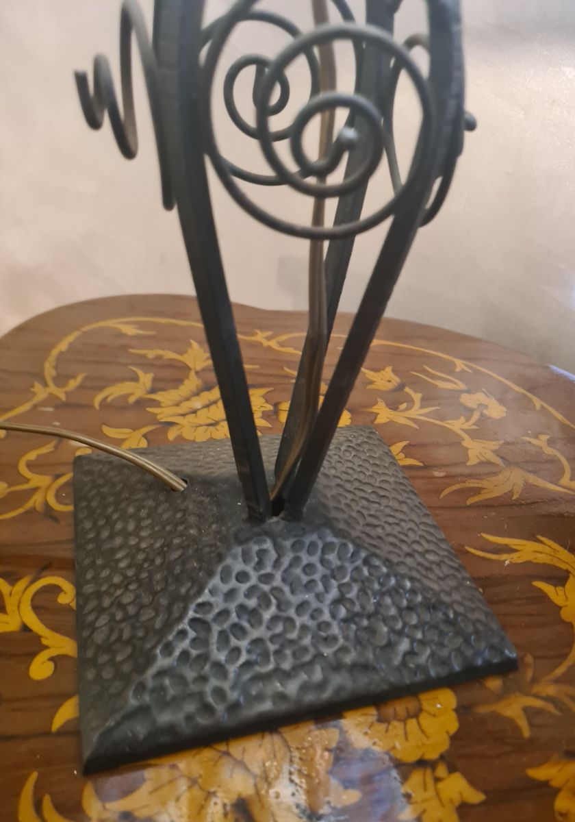lampe fer forgé ancienne ,1900 a 30 avec abat jour verre vit