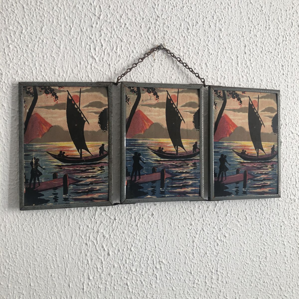 Miroir vintage 1940 triptyque barbier coiffeur bateau mer -