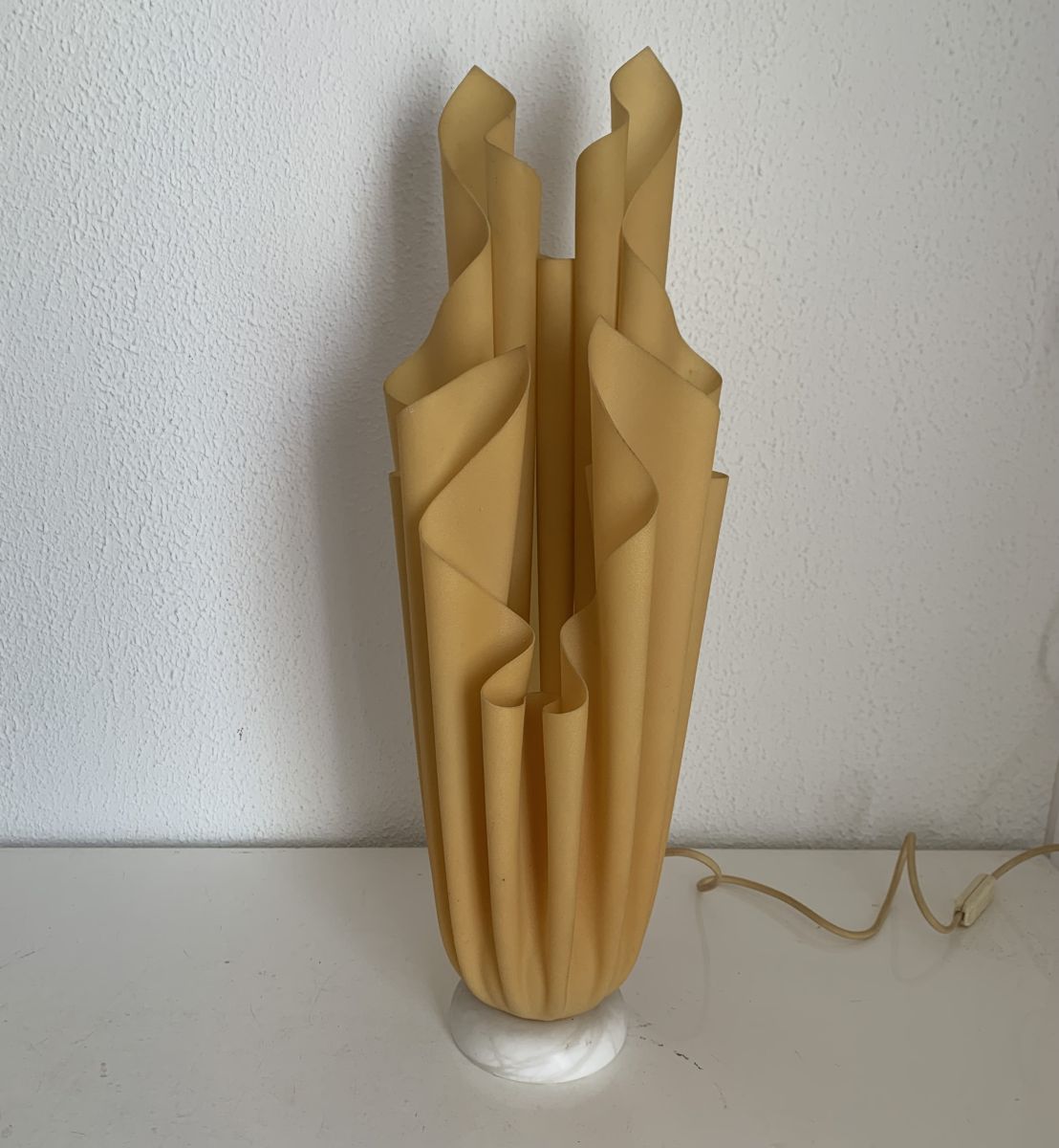 Ancienne lampe de table Athéna design Georgia Jacob en résine drapée couleur chair et socle en marbre blanc circa 1970 en bon état.