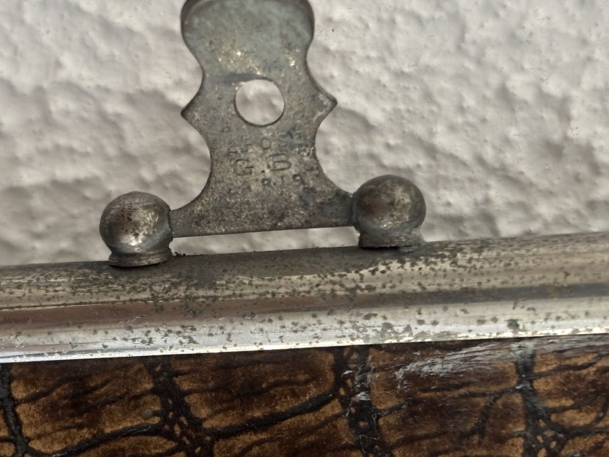 On trouve la mention déposé G.B Paris sur le fermoir. Probablement un miroir de la marque Le Solide.