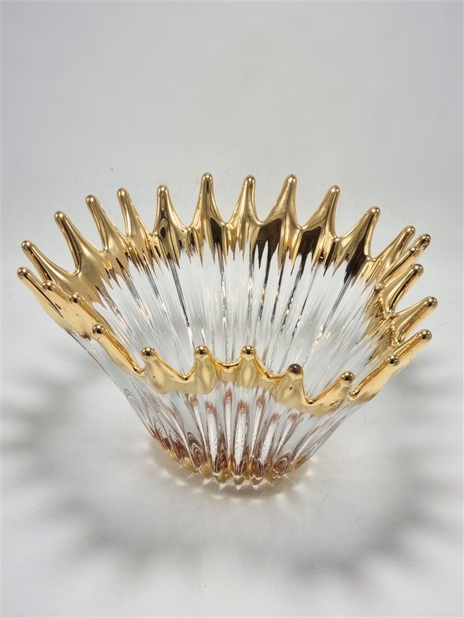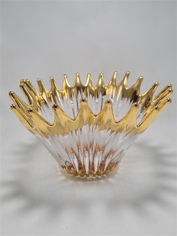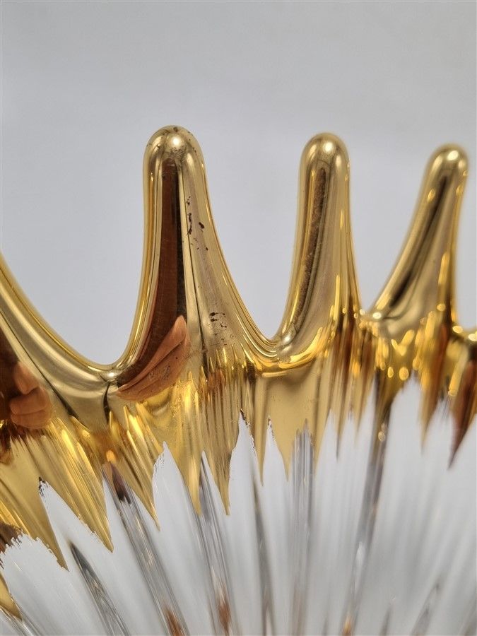 Coupe Cristallerie De Bayel, des années 50, forme en pointes aux bouts arrondis de couleur dorée rappelant des flammes.
