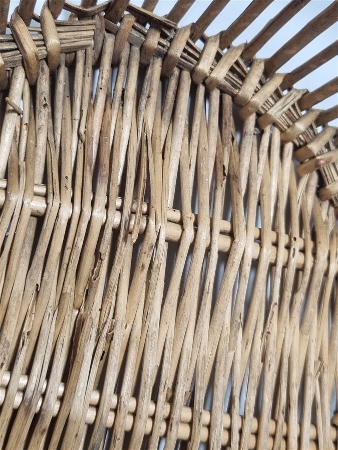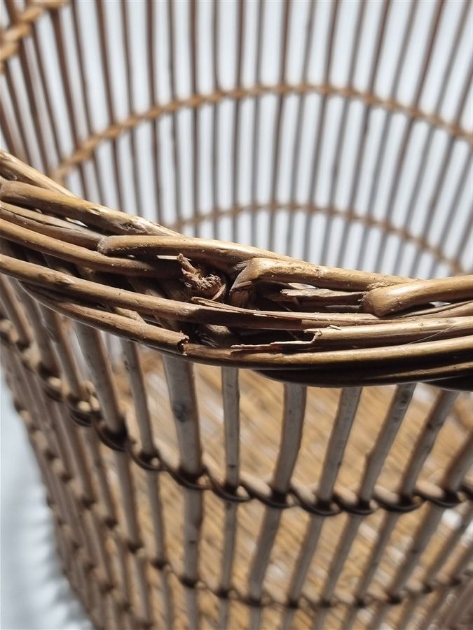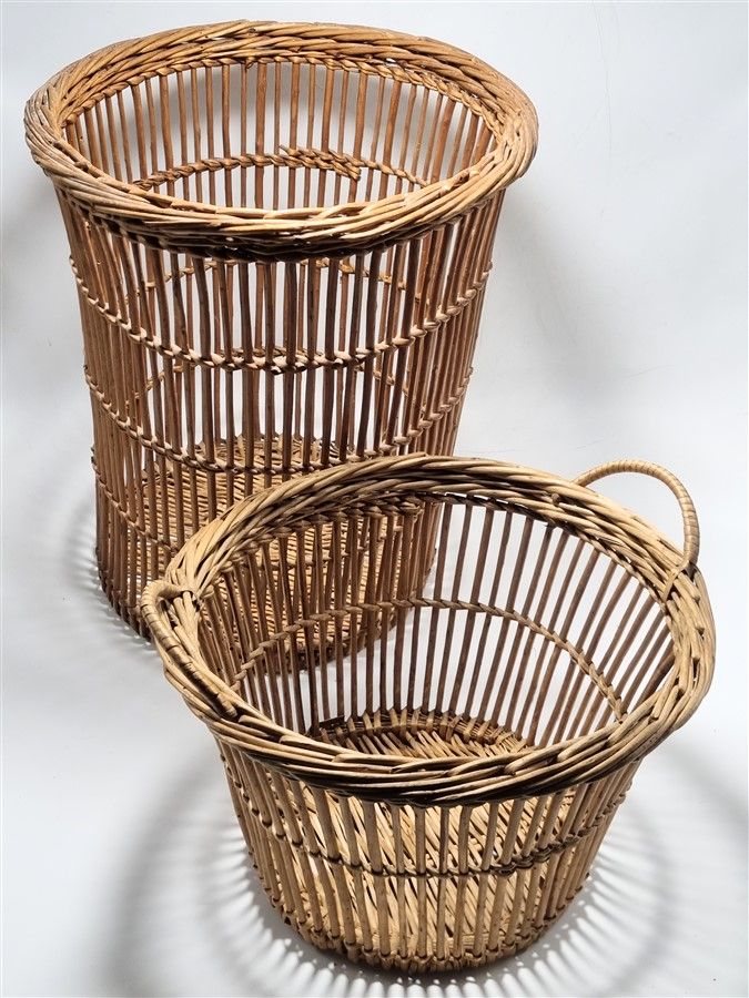Duo de petits paniers en osier, quelques brins abîmés, le fond du plus grand est aussi un peu fragilisé.