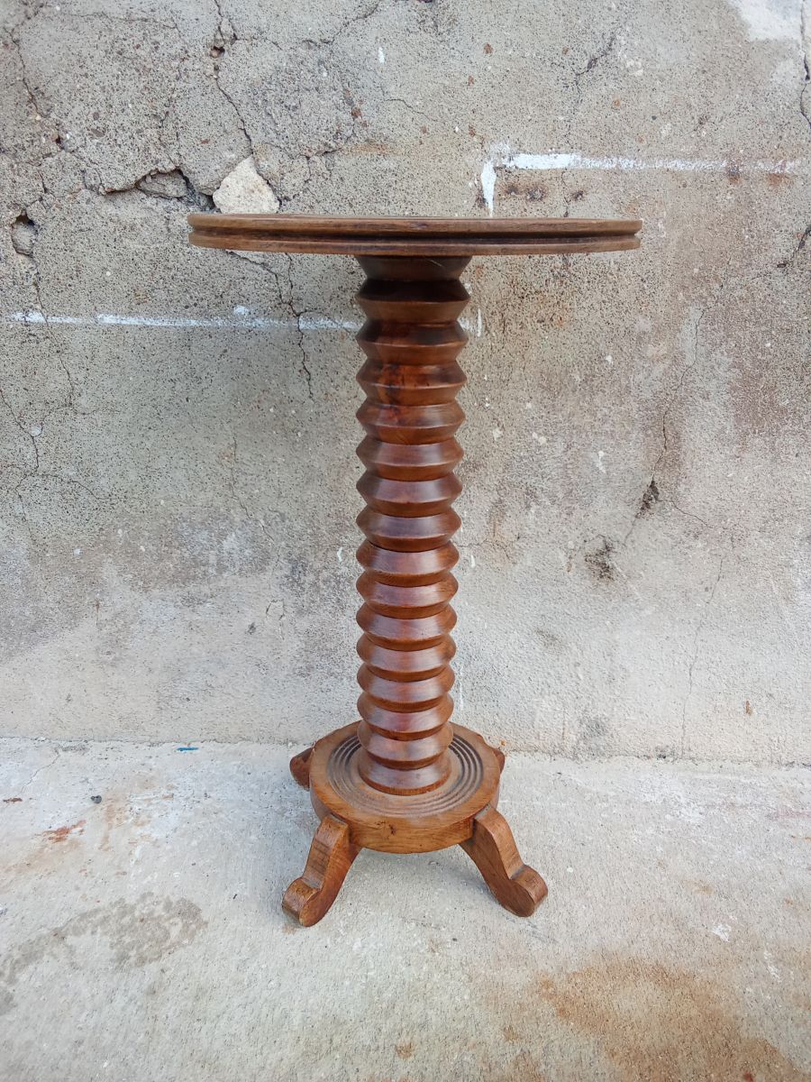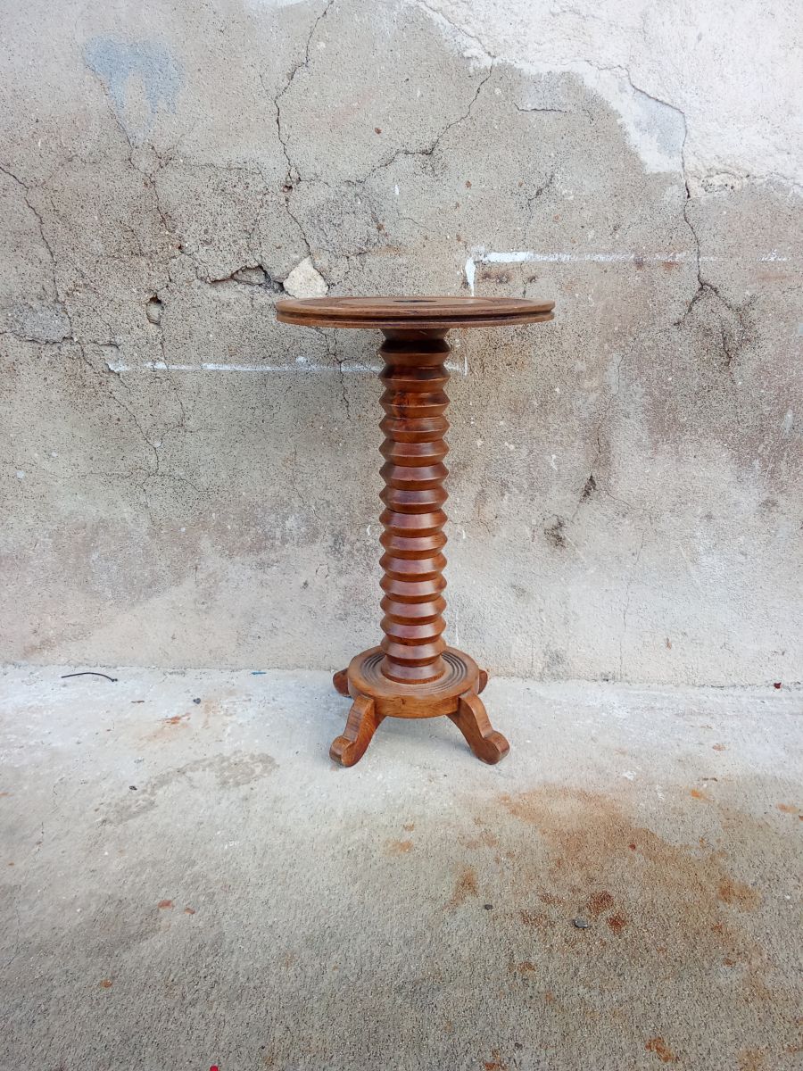Superbe guéridon qui a était conçu a la base pour un lampadaire du designer Charles Dudouyt. Il n'y a pas de signature mais un travail proche a ces créations. Dimensions : 69 cm de hauteur; 29 cm de large . En bel état