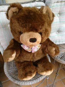 LAPIN PELUCHE ANCIEN 45 CM BON ETAT MARRON